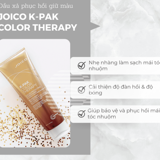 Dầu xả Joico K-Pak Color giúp dưỡng cho tóc mềm mượt, giảm xơ rối và dễ kiểm soát. Hệ dưỡng chất bảo vệ và hợp chất phục hồi hư tổn giúp tăng cường độ đàn hồi, bóng mượt cho mái tóc. Khôi phục và bảo vệ lớp biết bì tự nhiên trên tóc, giúp khóa chặt màu nhuộm và giữ cho màu tóc lâu phai, rạng rỡ.